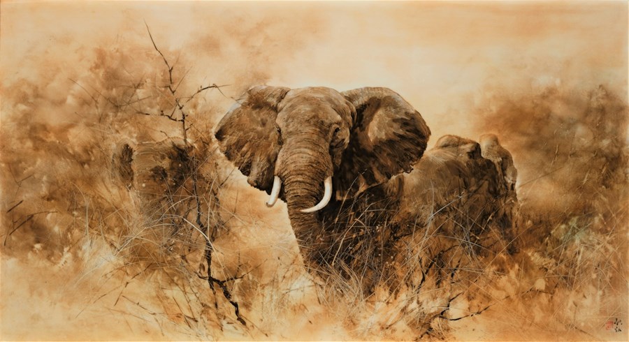 This stereoscopic 3D image is generated from the Ceramic Painting CIMB-PP-2110-021 by proprietary algorithm and AI technology.