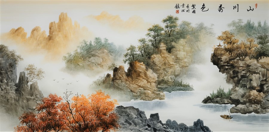 In this work, the painter has transposed traditional Chinese landscape painting in pastel onto ceramic panel with delicate and skillful workmanship, which is refreshing for collectors to perceive the majestic momentum of the landscapes.