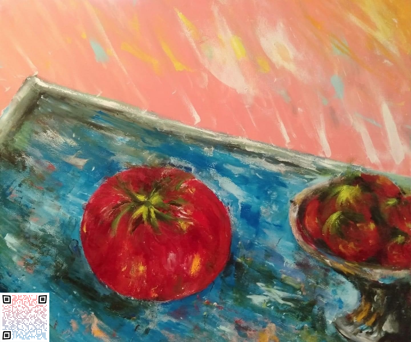 Adeline uses her fingers deftly, creating the most abstract artworks punctuated with glimpses of discernible birds, and surreal swirls of flowers. With her strong and uninhibited finger strokes, her paintings express her unique abstract concepts and her finger-painter's passion for life. Her best pieces are often created while she is blindfolded. All of Adeline's art pieces revolve around the trinity of LIFE - Love, Joy, and Faith.