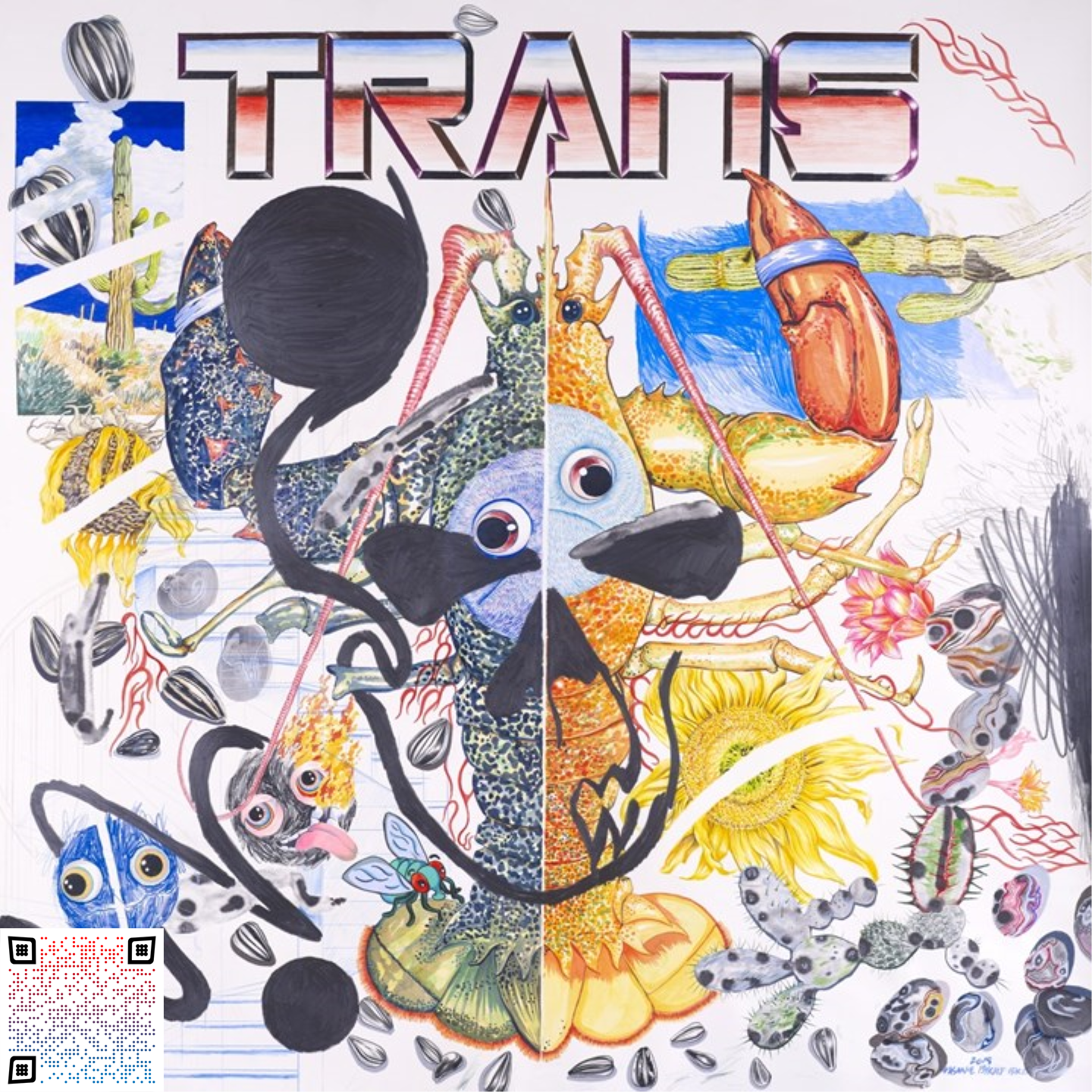 His practice spans a variety of media, including painting, drawing, installation, video work and sculpture. His works typically manifest hybridity of fictional and surreal iconography drawn from the personal invention as from a melange of pop cultural references, such as comic books, science fiction, street art and film. He personifies his personal struggles as an artist with strange characters and creatures that inhabit his invented universes.